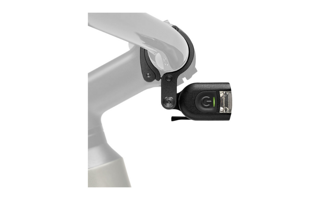 - Le support de fixation se fixe et s’enlève facilement et s’adapte sur les cintres de 22.2, 25.4 et 31.8 mm de diamètre pour pouvoir positionner l’éclairage au-dessus, en dessous ou devant la potence dans le but de s’intégrer parfaitement entre les câbles et le support GPS,